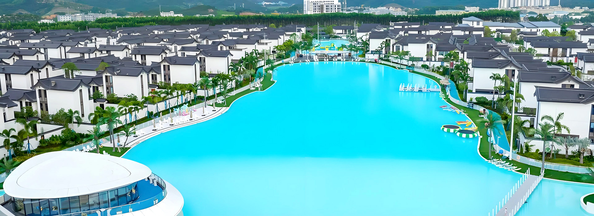 贵港际华园荷府项目坐拥约4万方“水晶湖”,迭新第三代湖居,是国际少见,国内首创的大体量净水文体活动设